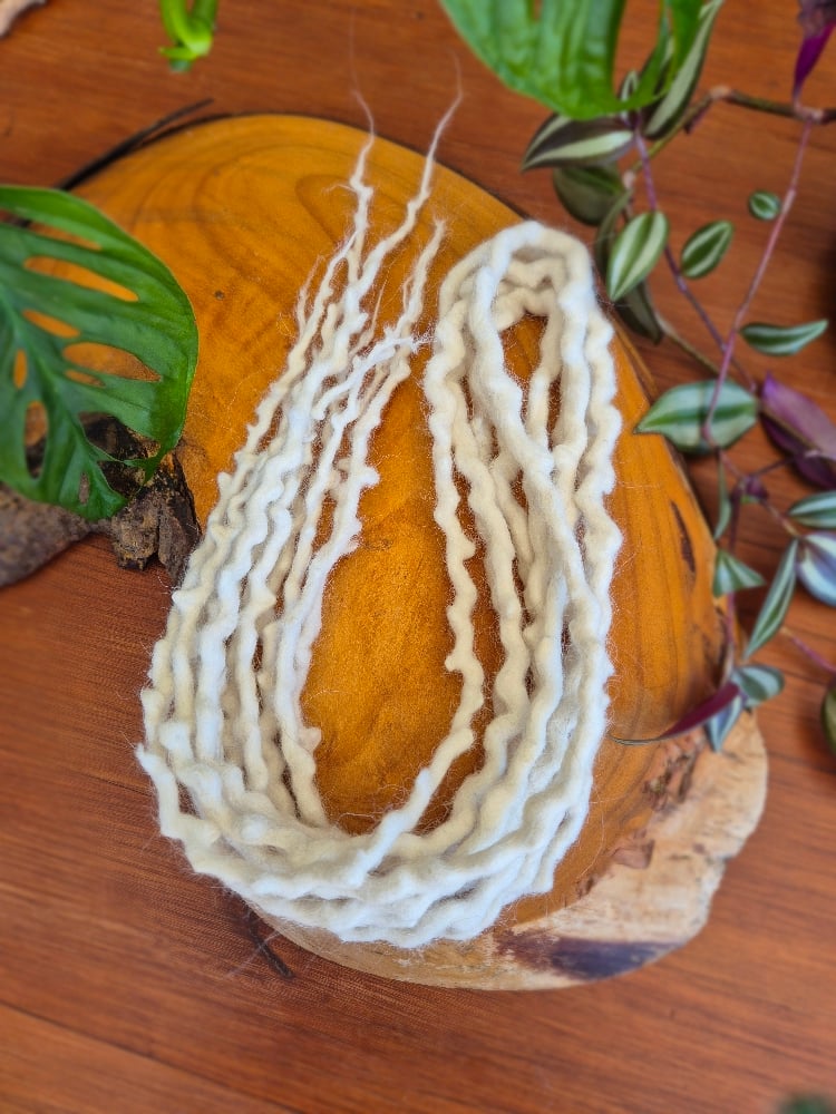 Alpaca wool is luxuriously soft and so flexible making them the most comfortable type of dreadlock extension. They are double ended allowing you to braid them in for temporary wear, thread through the bases of existing dreads for volume or use them to permanently lengthen existing dreadlocks. Alpaca wool is free from lanolin making them hypoallergenic.