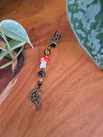 Gorgeous dreadlock dangle with a bronze bead and faerie charm. Featuring tigers eye beads and a glass mushroom to add a touch of magic and eye-catching detail to your dreads!