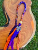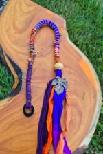Created with love and positive intention, here at Riverbed Dreads. Woven layers of Sari Silk, recycled fabrics and beautiful threads in a mix of colours to make your heart sing! Charms and beads offer an extra touch of magic. With an elastic loop at the top, these one-of-a-kind wraps can be effortlessly looped into your dreadlocks in seconds, or tied into loose hair. This particular wrap is approximately 55 cm long.